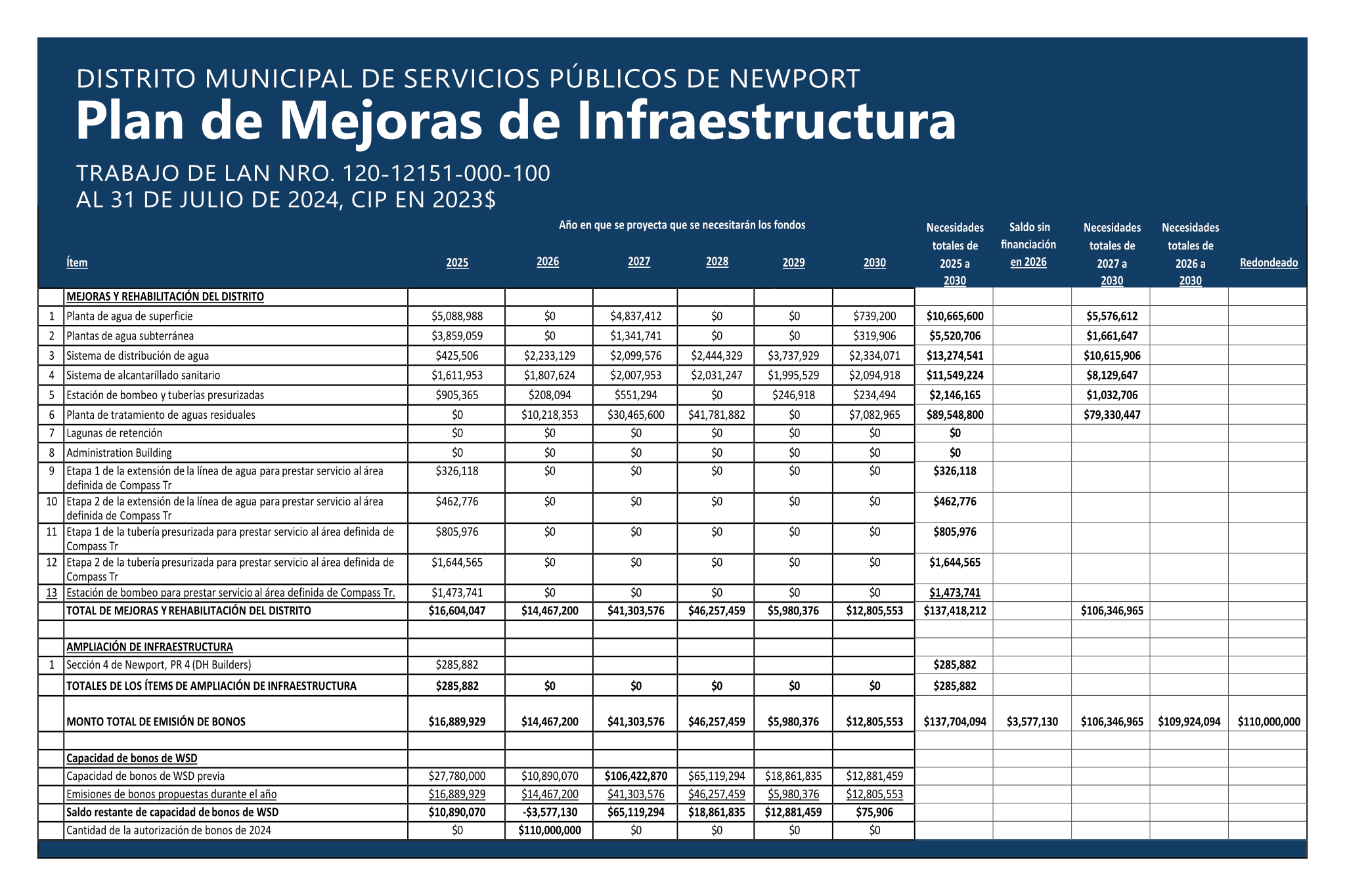 Newport MUD convoca una Elección de Autorización de Bonos para nov. de 2024