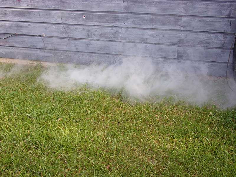 Smoke testing is a relatively simple process that consists of blowing smoke mixed with large volumes of air into the sanitary sewer line usually induced through the manhole. The smoke travels the path of least resistance and quickly shows up at sites that allow surface water inflow. Smoke will identify broken manholes, illegal connections including roof drains, sump pumps and yard drains, uncapped lines and even will show cracked mains and laterals, providing there is a passageway for the smoke to travel to the surface.