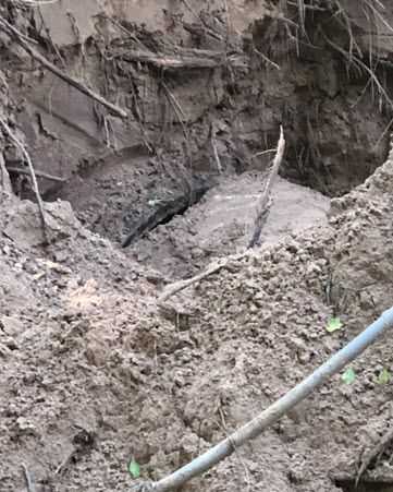 Crack in the Effluent Line that caused sink hole.