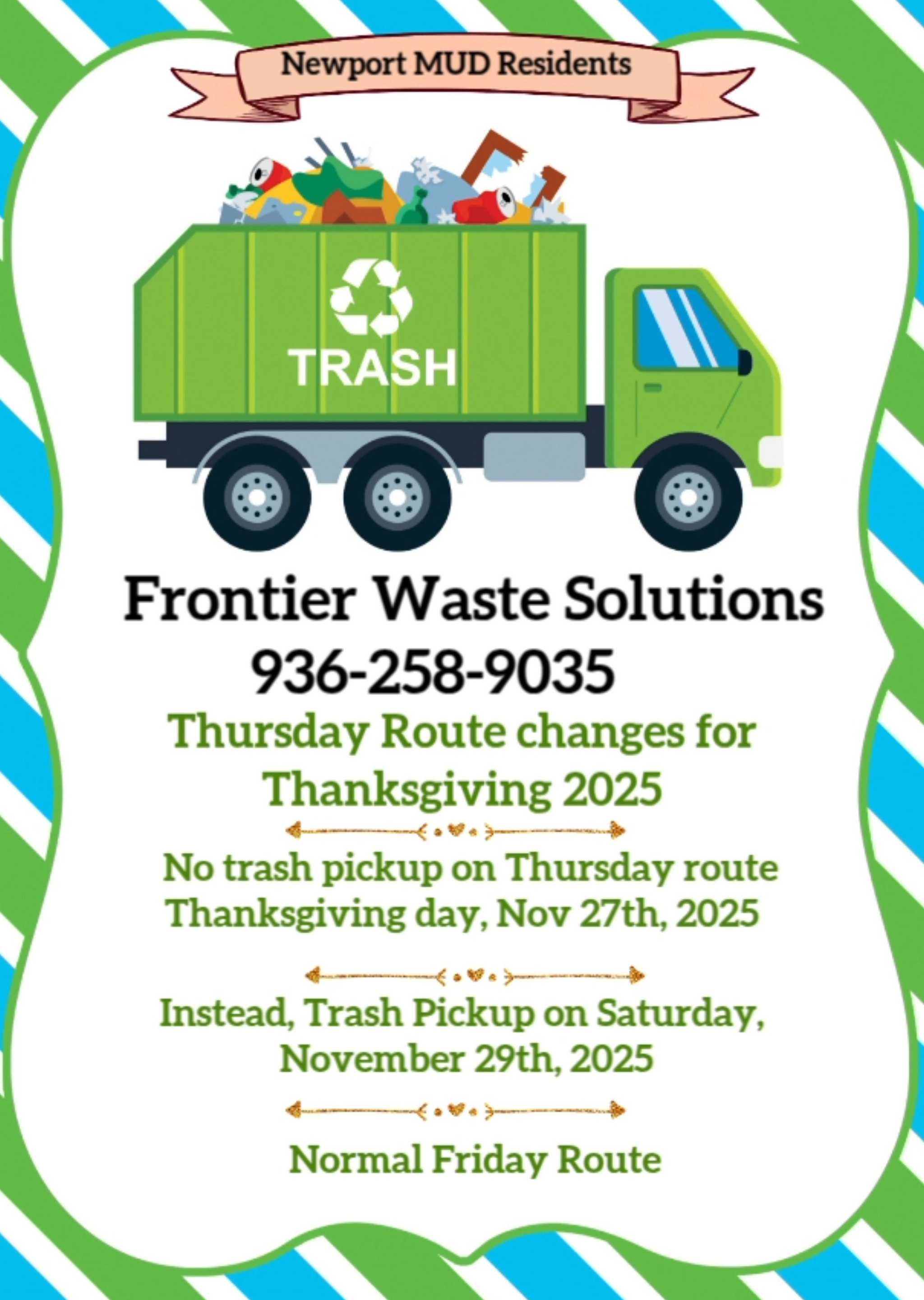 Newport MUD Thanksgiving Trash Schedule