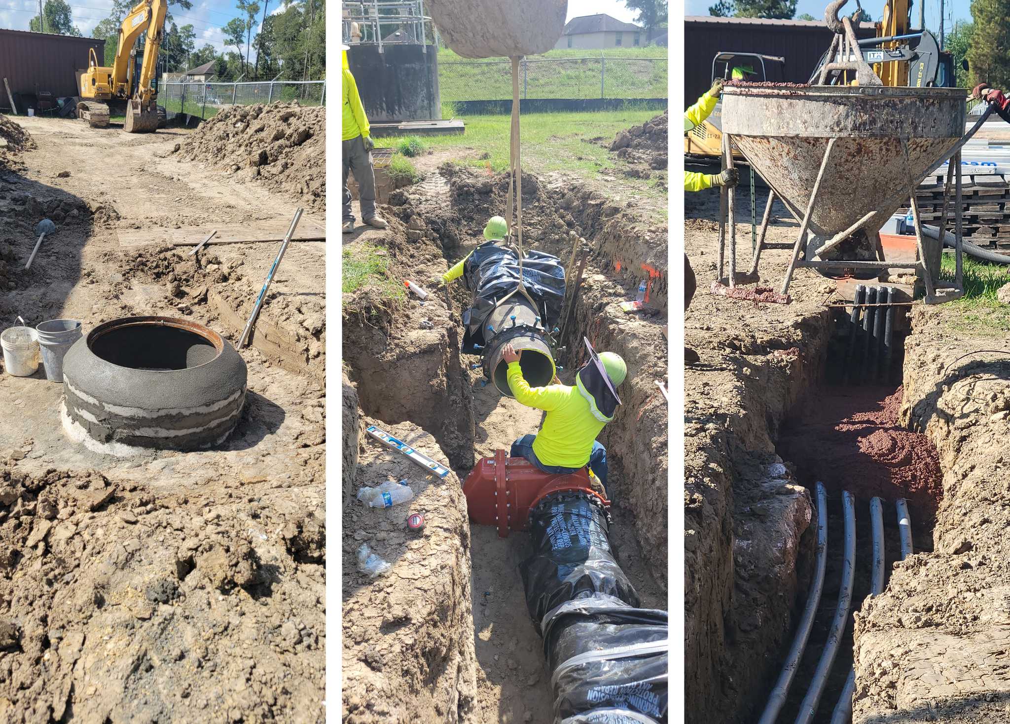 October was a major push to complete general site work items while waiting for the building’s materials to be delivered. Over the month, the contractor finished installing the sanitary and storm pipe, manholes, and inlets for the project, as well as several raw water items to later facilitate the wet connection at the intake. While these items were being worked on, the electricians continued work installing the remaining duct banks and conduits to connect future equipment to existing electrical panels.